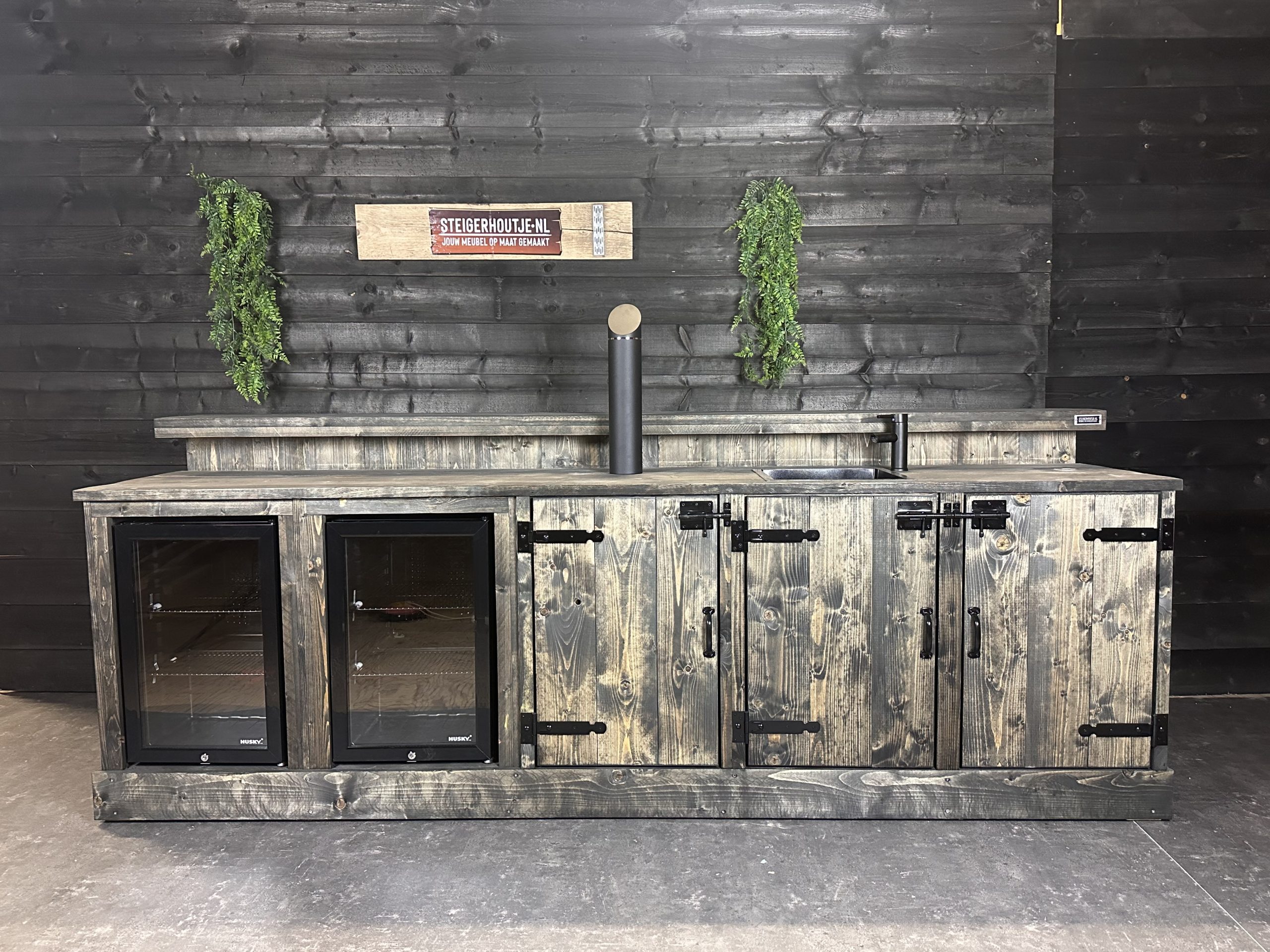 Op zoek naar een bar met karakter? Ontdek de Bar Rocky – een stoer en opvallend model met industriële flair. Deze bar is niet alleen een echte eyecatcher, maar ook volledig aan te passen aan jouw wensen en ruimte. Perfect voor je tuin, veranda of buitenverblijf.