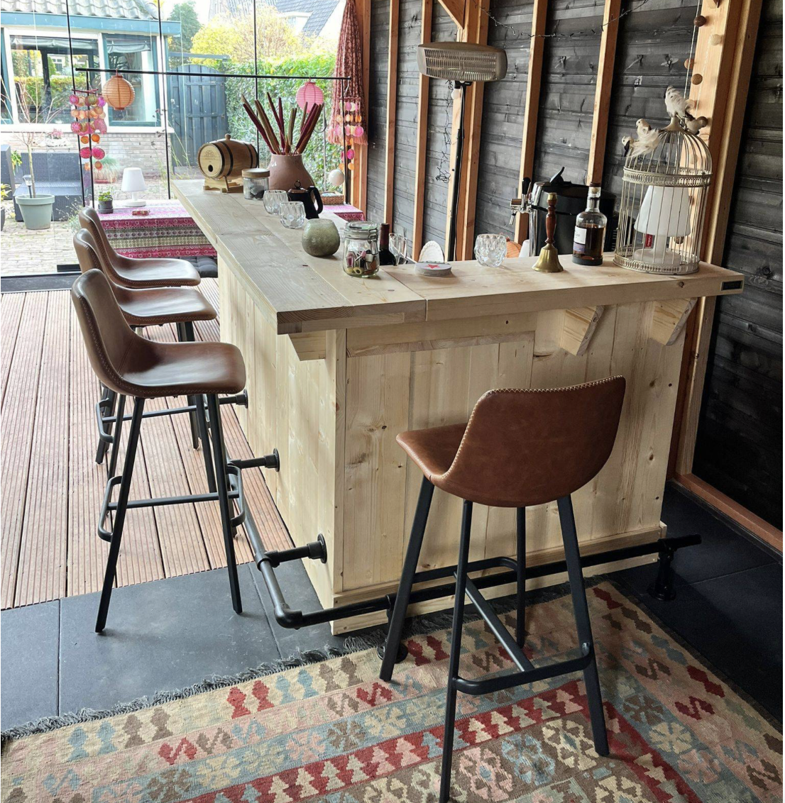 Een robuuste buitenbar die uitnodigt om het buitenleven samen te vieren.