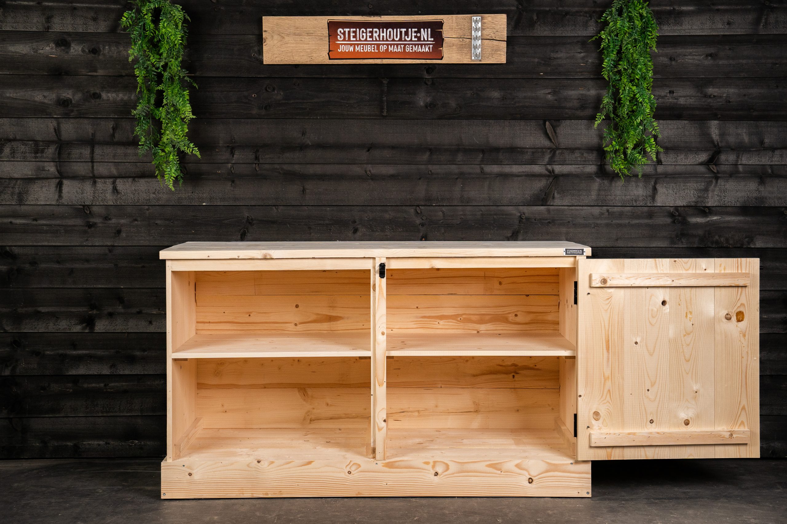 Deze buitenkeuken wordt geleverd als compleet bouwpakket van geschaafd hout. Je kunt kiezen voor steigerhout of Douglas hout, beide met een robuuste en natuurlijke uitstraling.