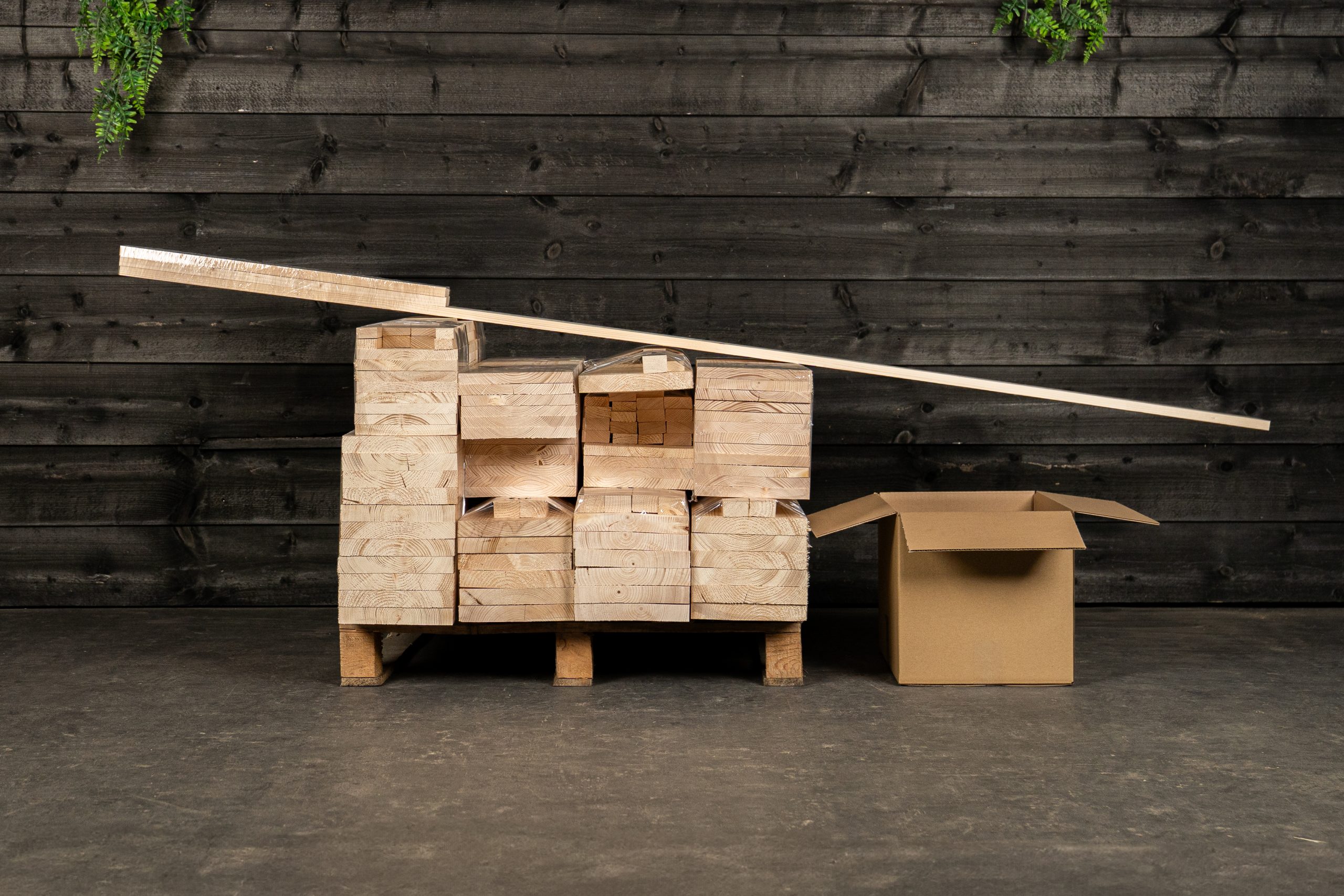 Het pakket wordt geleverd in meerdere bundels, waardoor het gemakkelijk te verplaatsen is naar de plek waar je gaat bouwen.