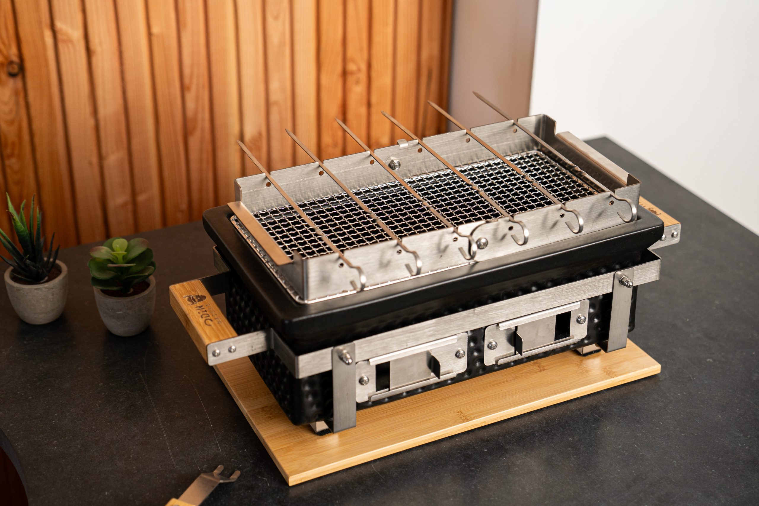 Met onze rechthoekige Shichirin grill beleef je de authentieke Japanse barbecue-ervaring. Dankzij zijn compacte en veelzijdige vorm is deze houtskoolgrill perfect voor een gezellige avond met vrienden of familie in de buitenlucht. De rechthoekige vorm biedt extra grillruimte, zodat je meerdere gerechten tegelijk kunt bereiden. Hij is eenvoudig in gebruik en de ingebouwde luchtregelaars maken het mogelijk om de hitte nauwkeurig te regelen. Ideaal voor op het terras, balkon of zelfs tijdens een picknick!
