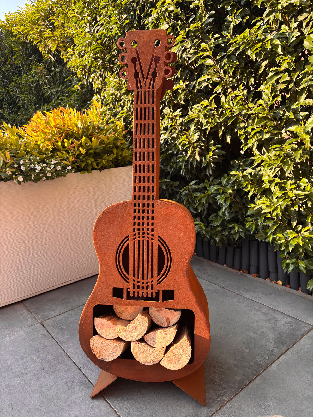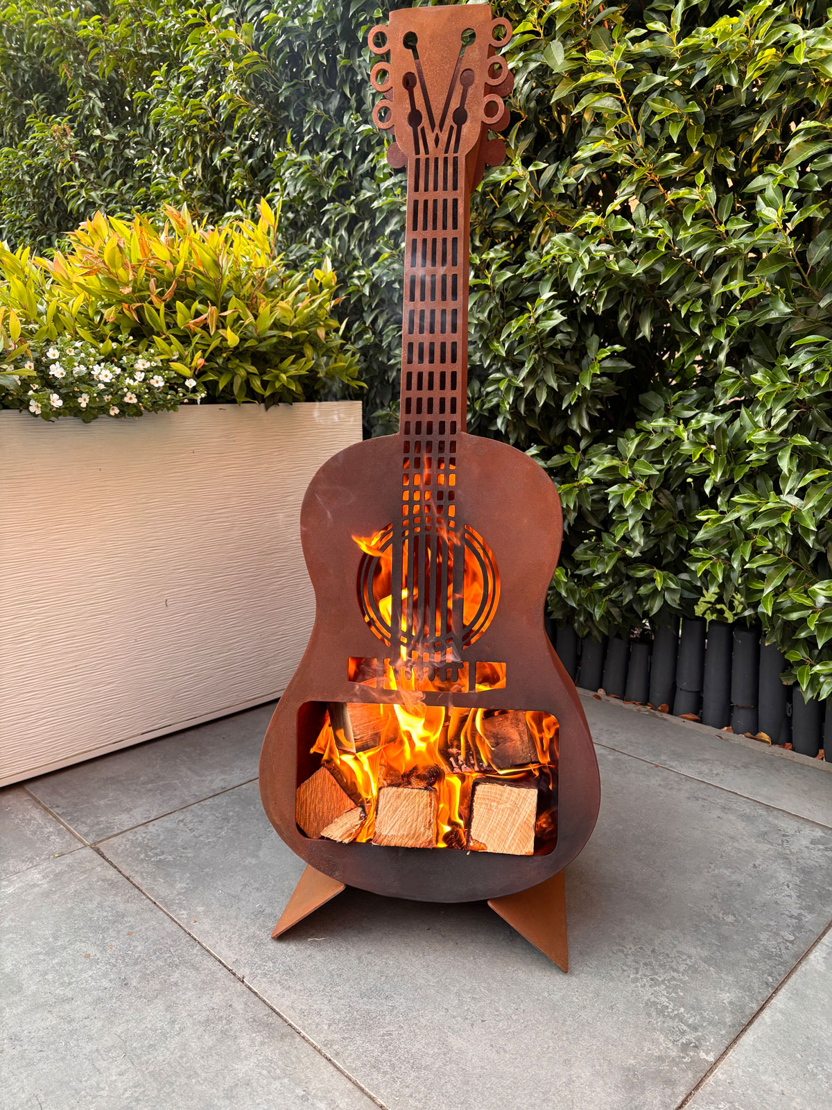 Maak van elke avond buiten een sfeervolle belevenis met deze robuuste vuurkorf in de vorm van een klassieke gitaar! Gemaakt van 2,5 mm dik cortenstaal is dit niet alleen een echte blikvanger, maar ook een duurzame warmtebron die zijn vorm behoudt, hoe heet het vuur ook wordt. Het staal krijgt na verloop van tijd een prachtige roestkleur, maar wordt nog niet geroest geleverd.