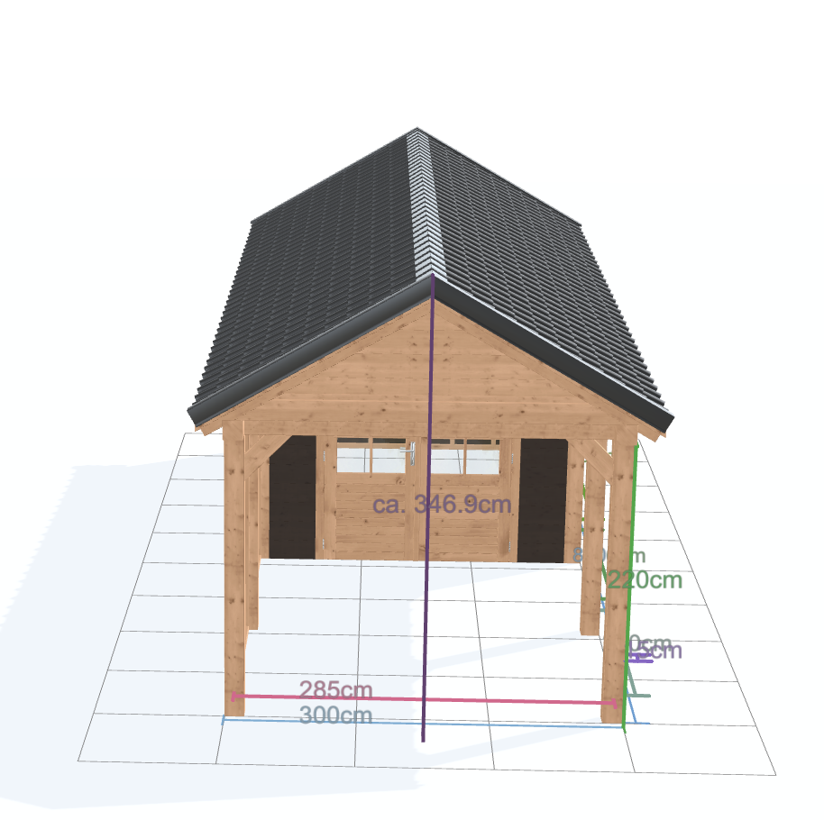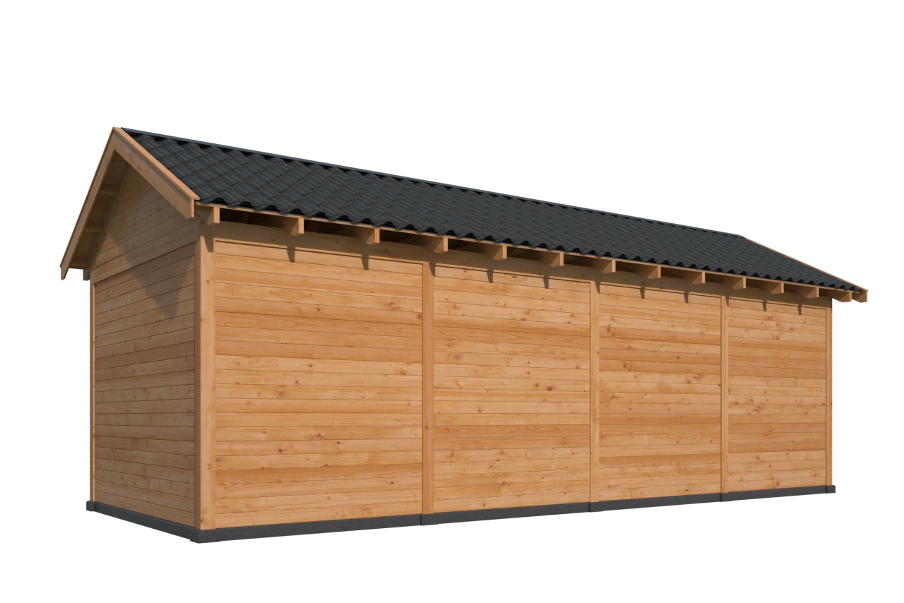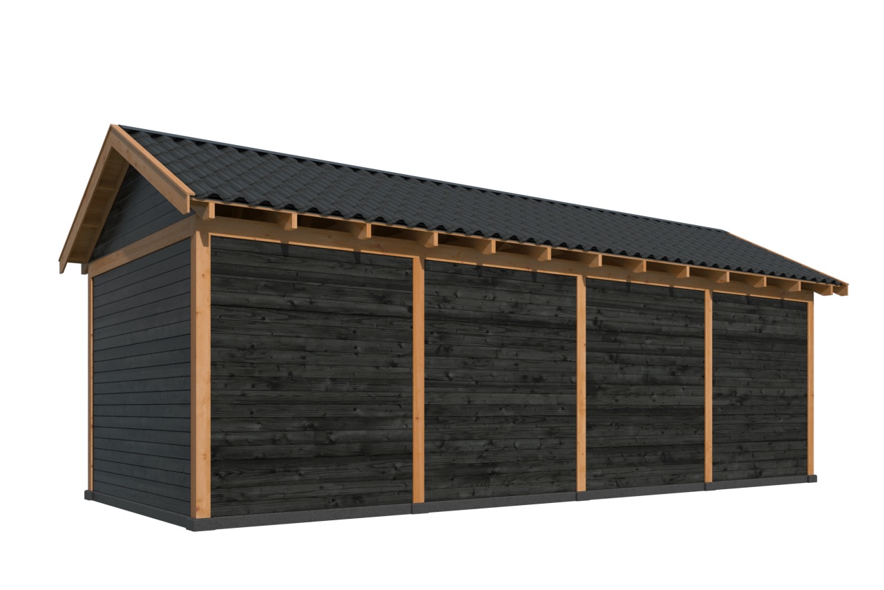 Naast een ruime overkapping bevat dit bouwpakket ook een afgesloten schuurgedeelte van 4×3 meter. Ideaal voor het opbergen van tuinmeubels, gereedschap, fietsen of andere spullen.