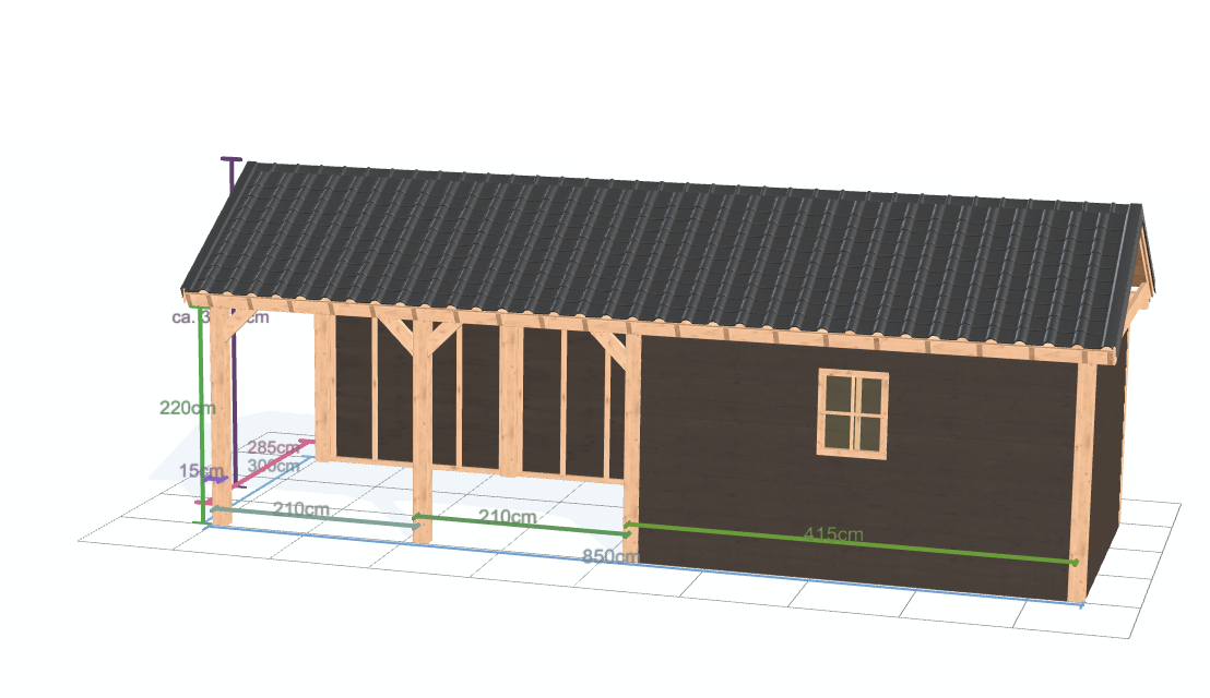 Zadeldak overkapping bouwpakket 8,5×3 meter