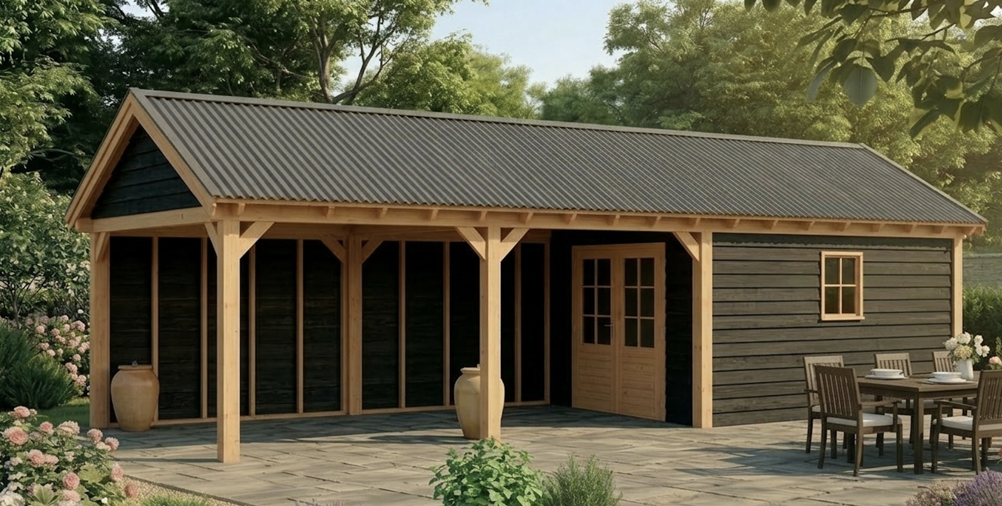 Met deze zadeldak overkapping creëer je een plek waar buitenleven en praktisch gebruik samenkomen.